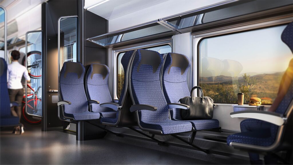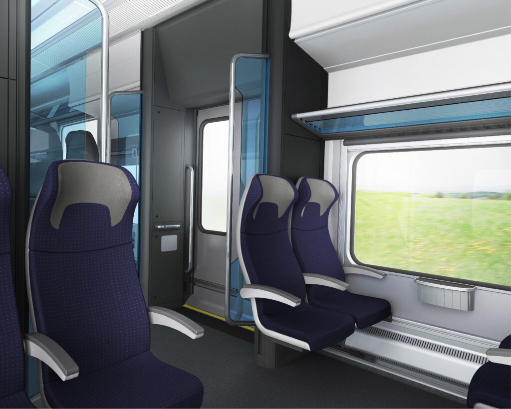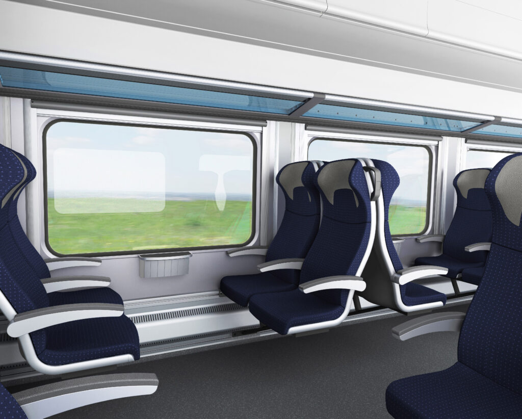 To increase the comfort of travel and safety of passengers, the EMU 654 is equipped with air conditioning, WiFi, holders for transporting 6 bicycles, 2 places for wheelchairs or larger luggage, monitoring, 2 ticket machines, a children’s corner, and in the entry / exit zone from the vehicle – containers for garbage separation.