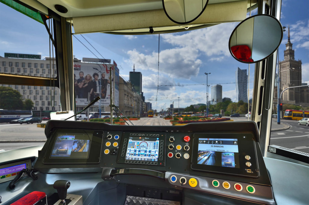 Low-floored Jazz has 6 pairs of doors on every site of the vehicle and that allows for a safe flow of passengers. It’s friendly for the crew thanks to the driving console with central computer terminal. Passenger Information system uses LCD screens. This vehicle is also equipped with the anti-collision system that warns the driver from a threat of collision with obstacles located on the track in front of a tram.